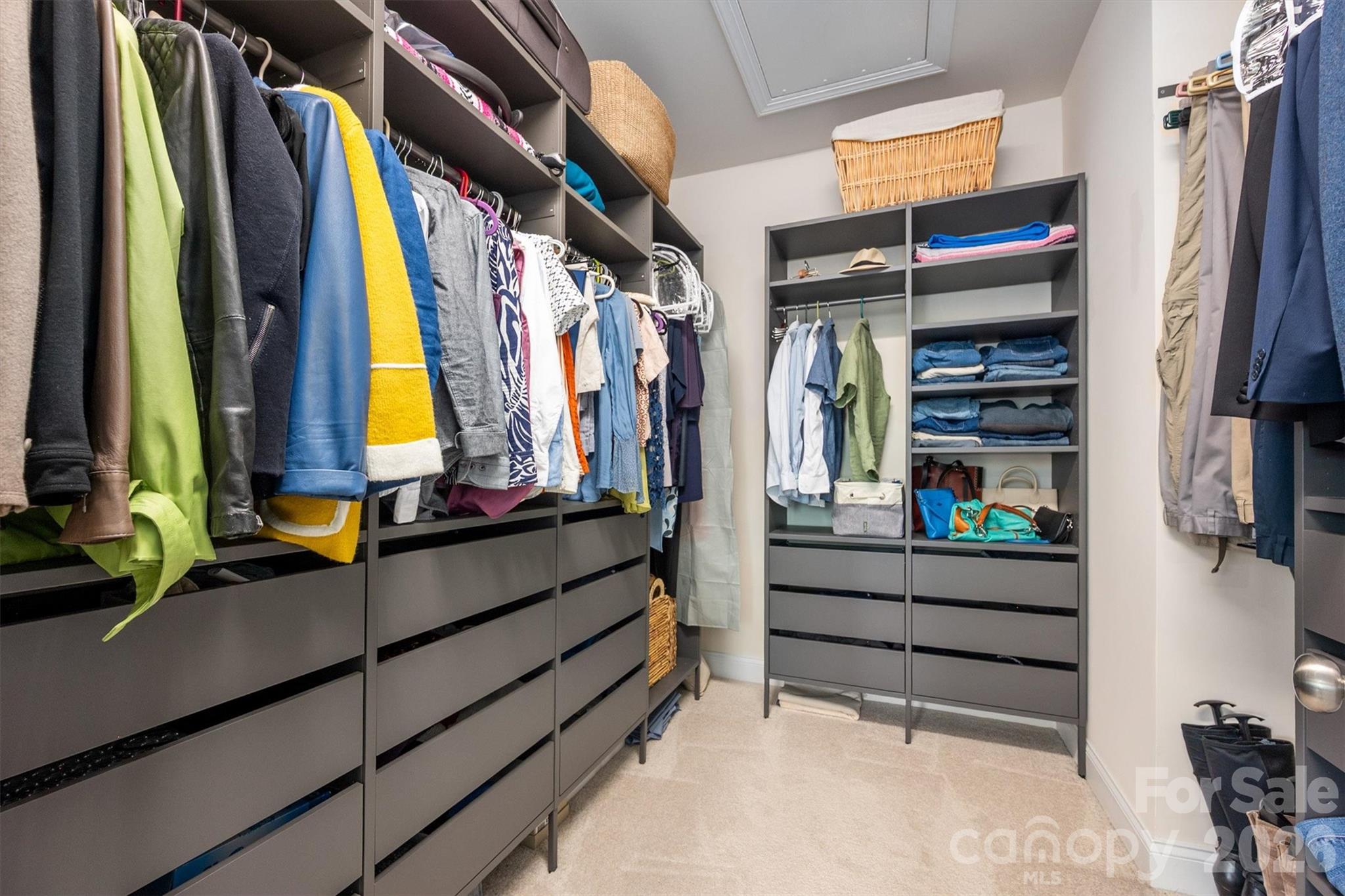 This lovely 4-bedroom, 3.5-bath townhome offers a wonderful blend of professional upgrades and warm, modern comfort in one of Charlotte's most desirable locations, just minutes from Park Road Shopping Center and Montford dining. The open-concept living area--defined by 9-foot ceilings--flows seamlessly into the kitchen featuring a large island, custom light fixtures & under counter lighting with motion sensors. Thoughtful interior refinements abound, including newly painted walls, Nest thermostats, and the replacement of carpeted stairs with elegant wood treads leading to the upper levels. The primary suite is warm and inviting whilst the bathroom is equipped with a heated towel warmer and heated floor controls with high-end custom units in a sleek gray finish. Practicality at every turn, from the reverse osmosis drinking water system and the retractable magnetic screen for the Juliet balcony to the garage's dual EV charging circuits and craftsman hanging storage system. Complete with a covered balcony featuring a newly added hose spigot for easy maintenance and a security motion light for peace of mind. Community features include a partially gated entrance, shared green spaces for pets, and guest parking. This home delivers an unparalleled low-maintenance lifestyle only minutes from SouthPark and less than 2 miles from Myers Park high school.