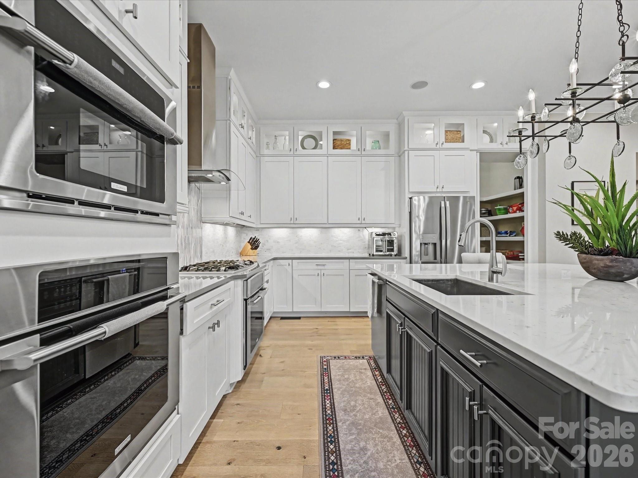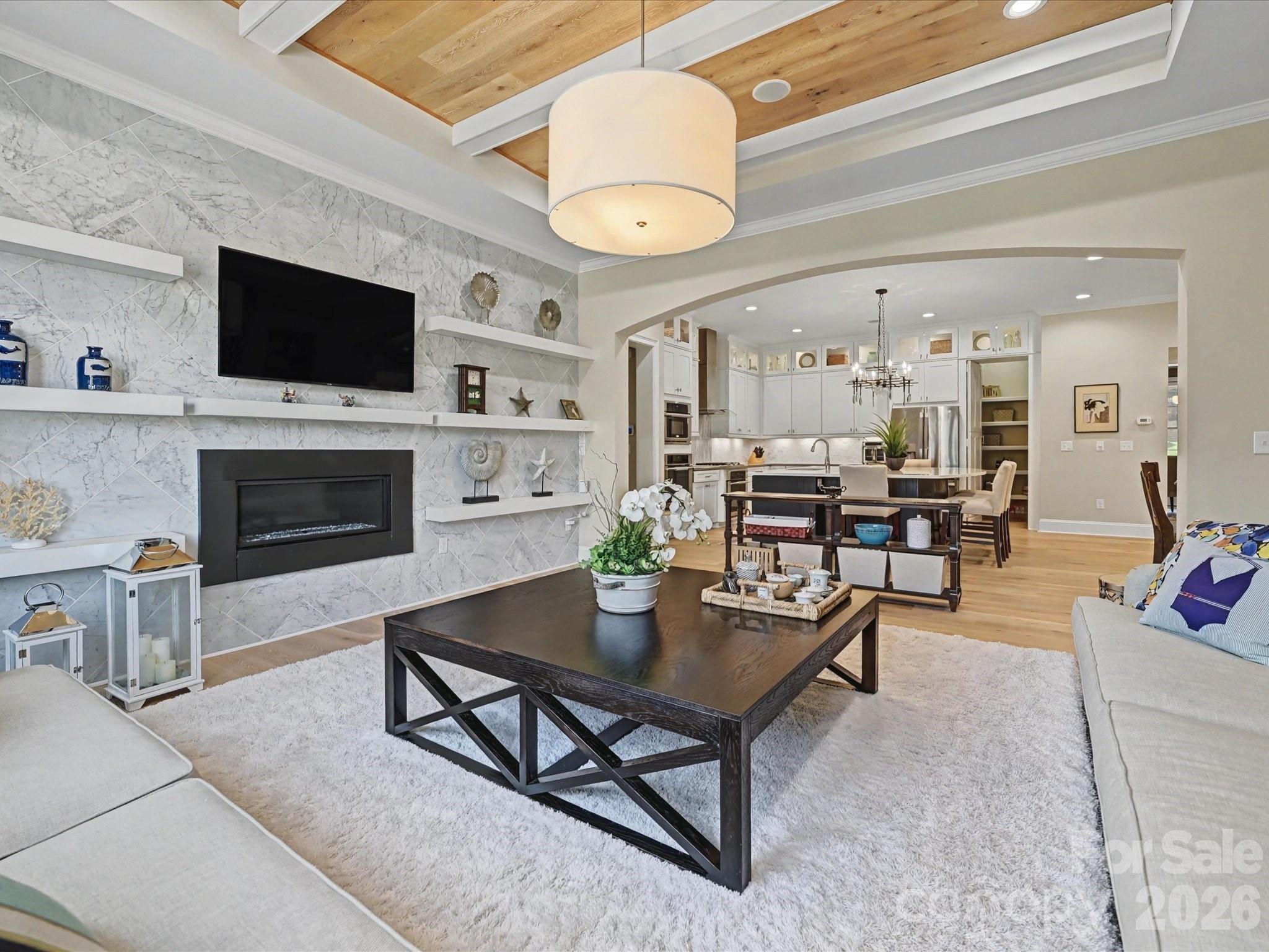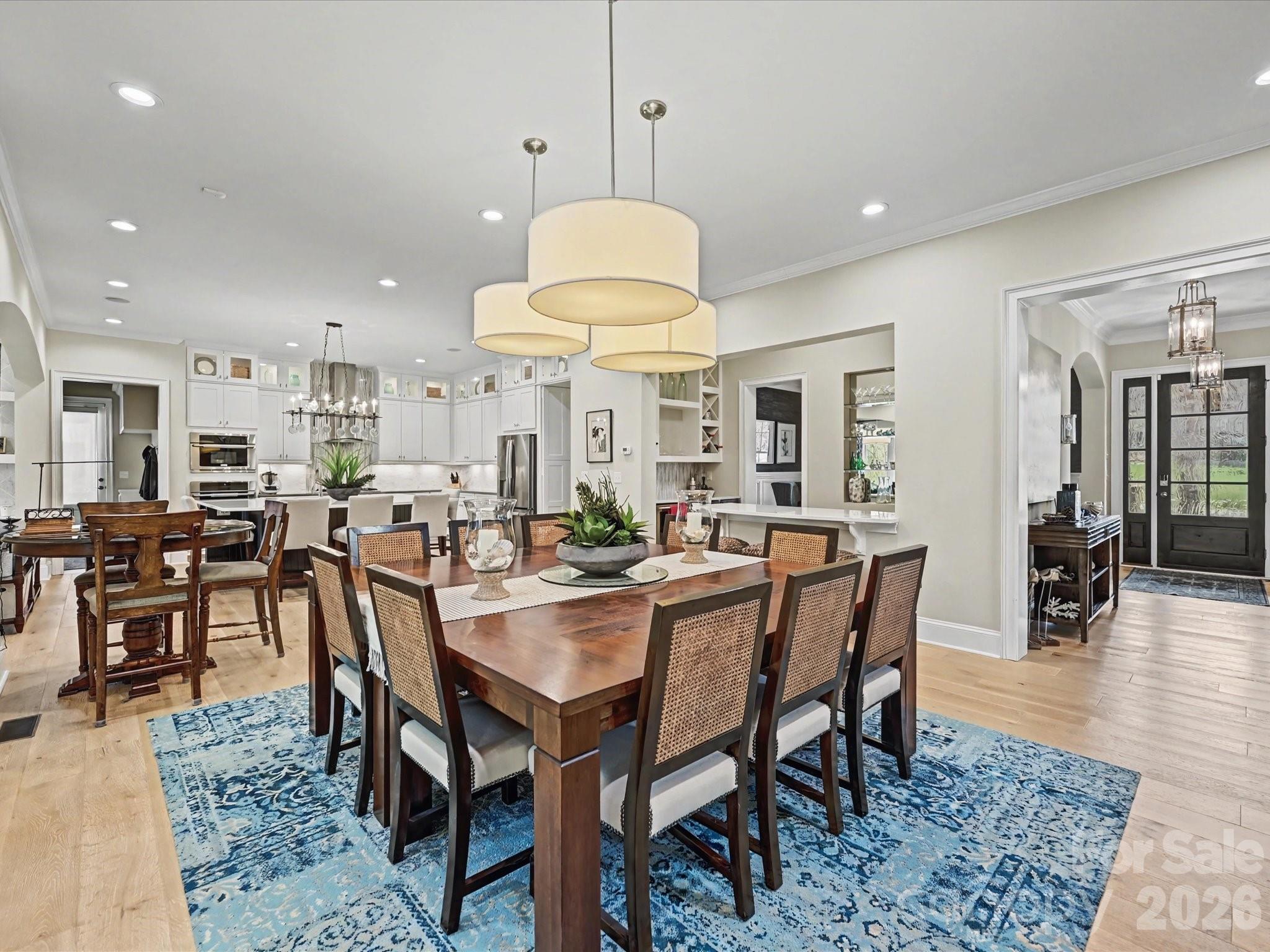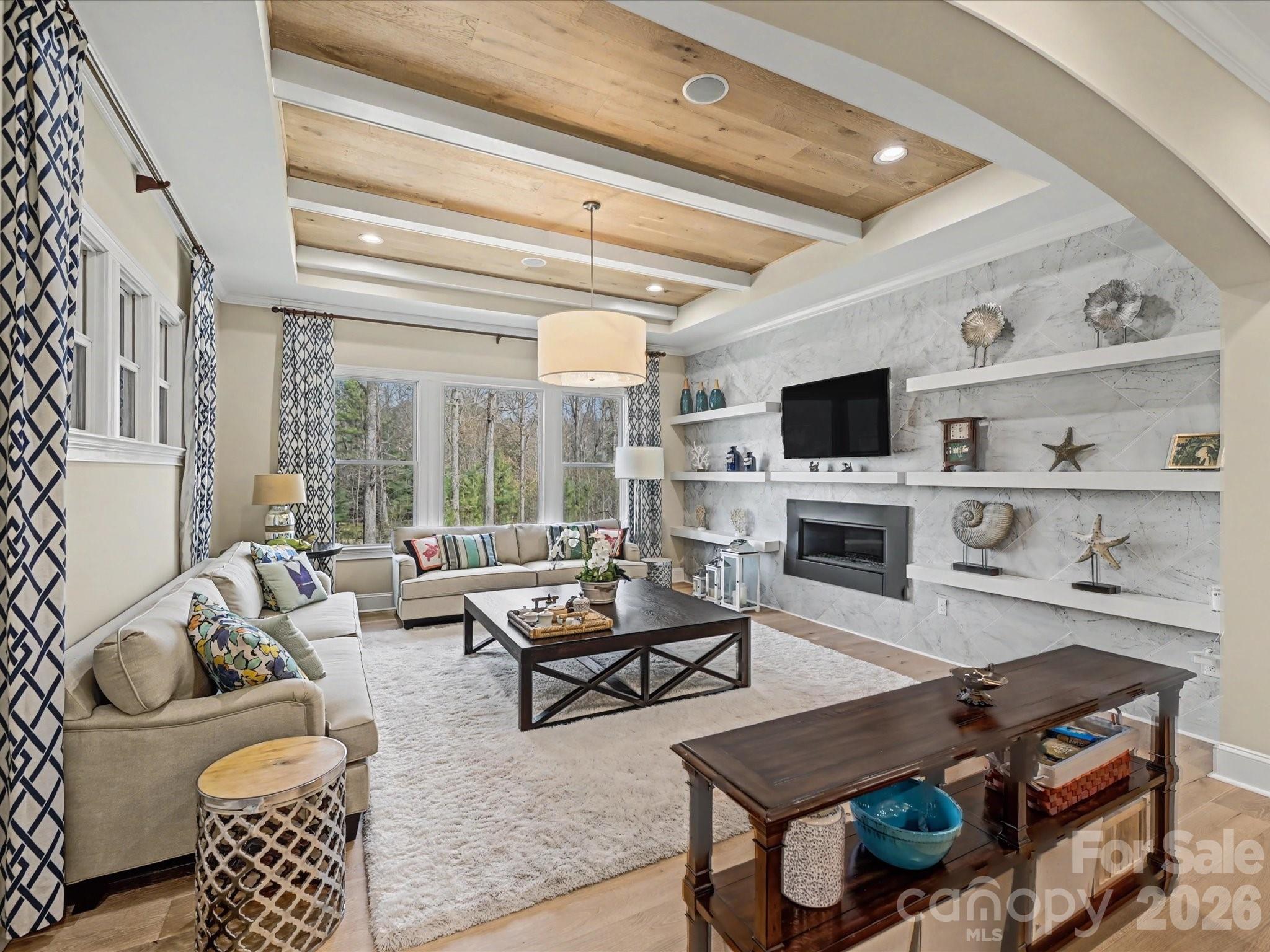 Absolutely stunning former model home with every imaginable upgrade plus 200K in owner added enhancements! Paver front walkway and to backyard fireplace area, formal rooms w beamed ceilings, HW floors main level and 2nd floor hallways, primary suite and bonus room, 10 foot ceilings main level, 9 foot 2nd floor, spacious GR w beamed ceiling and custom gas log FP, main level office w plenty of cabinetry, amazing kitchen w ceiling height cabinets w lighted glass front upper cabinets, quartz countertops, double ovens plus microwave, gas cooktop and large casual dining area, main level guest room (BR 5) w private BA, custom bar w cabinetry and 2 beverage coolers, enclosed 232 sf sunroom (not included in HLA) w bluestone flooring, vaulted beadboard ceiling and skylights and accordion style custom glass doors, amazing primary suite w double walk-in closets w organizer systems and a spa-style BA w oversized shower, garden tub and separate makeup vanity, 3 large secondary BRs w large closets, bonus/media room, beautiful owner added backyard renovation including Techno-Bloc patio and custom fireplace plus extensive landscaping and outdoor lighting, fully encapsulated, walk-in crawl space, many other extra features and upgrades; see special features in MLS. Conveniently located just minutes from premier shopping and dining at Waverly and Weddington Corners etc. Zoned for highly rated schools.