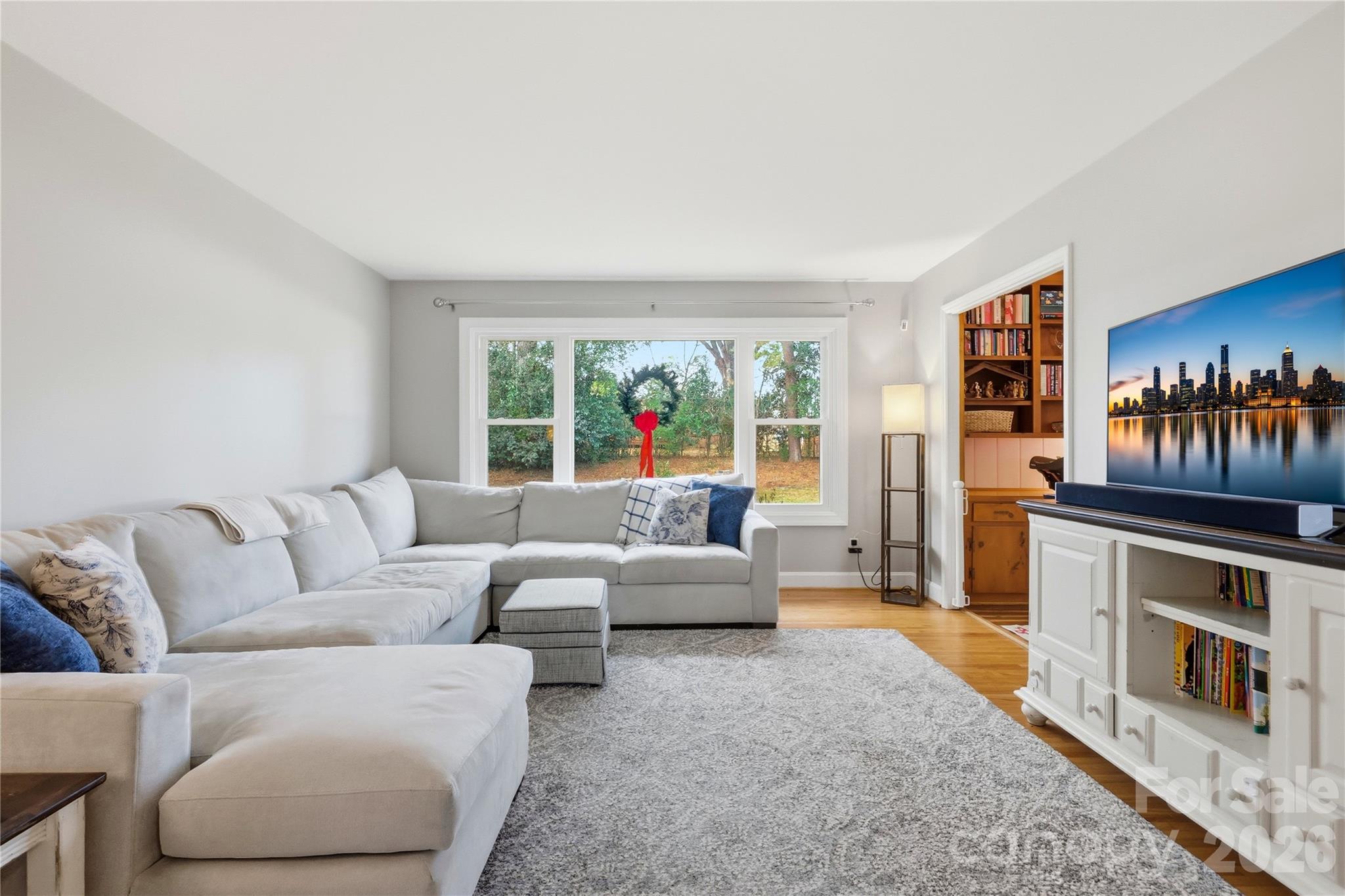 One of the best features is the massive picture window in the family room. It looks out over a private, fenced backyard with trees that bloom twice a year--it's the perfect backdrop for morning coffee. Plus, the home comes with a pro-installed $8k Tuff Shed, which is a massive win for extra storage or a workshop.